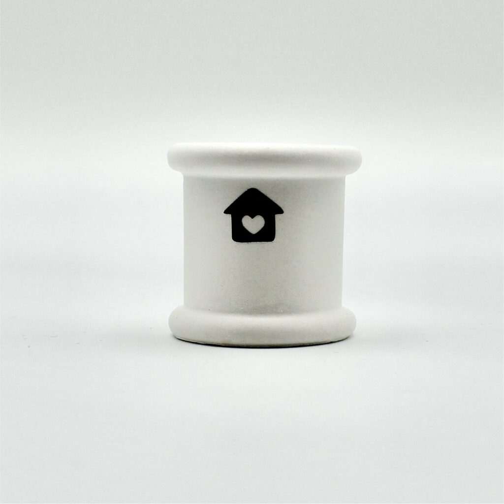 Der kompakte Kerzenhalter „Mini“ ist aus natürlichem Calciumsulfat mit Sorgfalt handgegossen und besticht durch sein einfaches, aber stilvolles Design. Verziert mit einer kleinem Haus, setzt er besondere Akzente und schafft eine Atmosphäre, in der Momente bei Kerzenlicht zu unvergesslichen Erinnerungen werden.