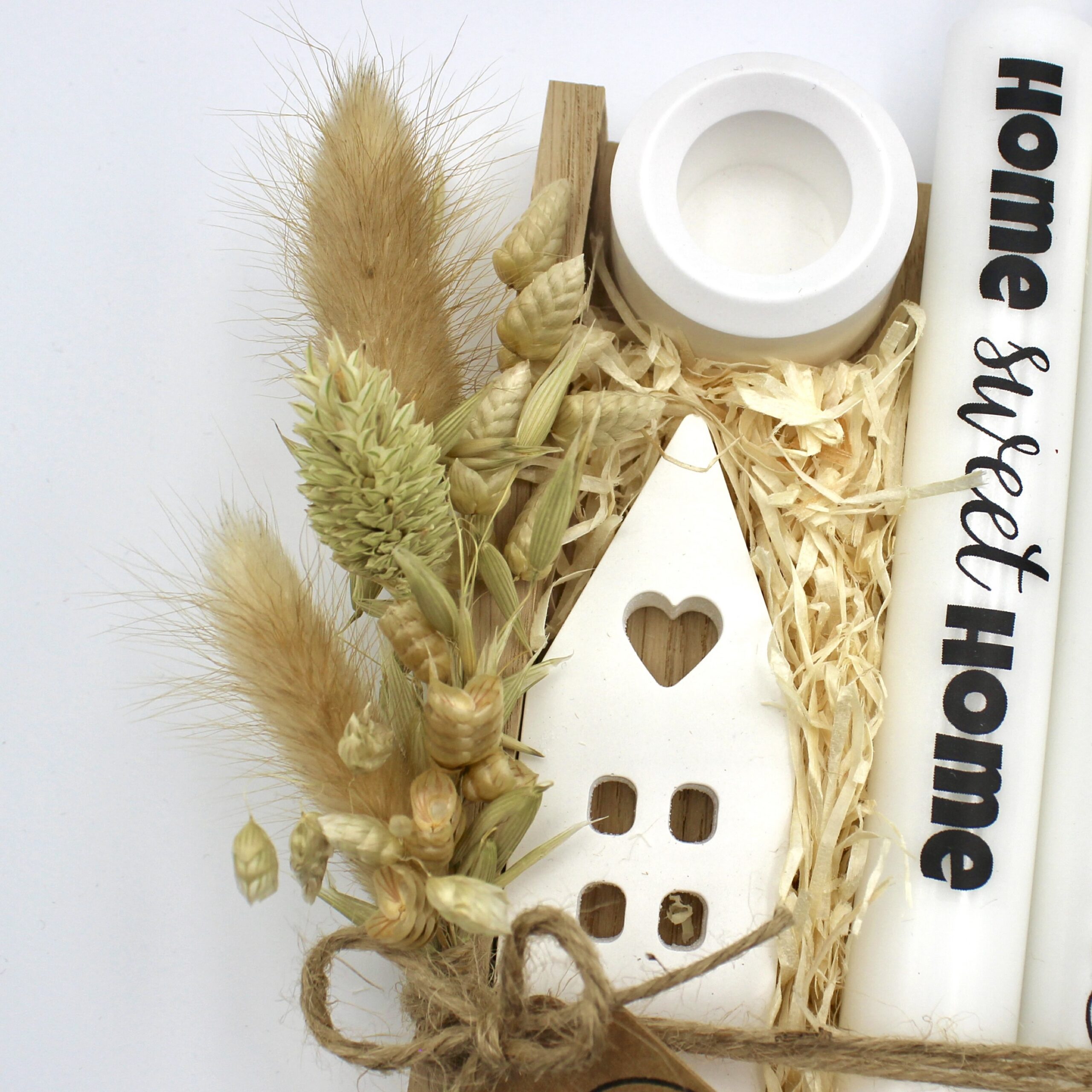 In unserem Geschenk-Set finden Sie neben einem Kerzenhalter auch ein zauberhaftes handgegossenes Haus. Das Haus aus demselben natürlichen Calciumsulfat hergestellt wie der Kerzenhalter.
