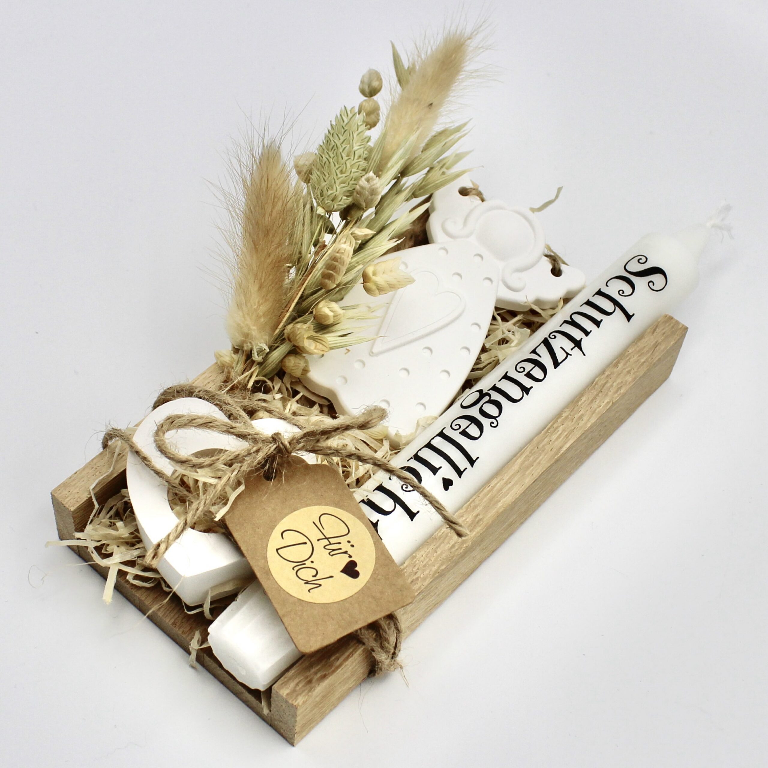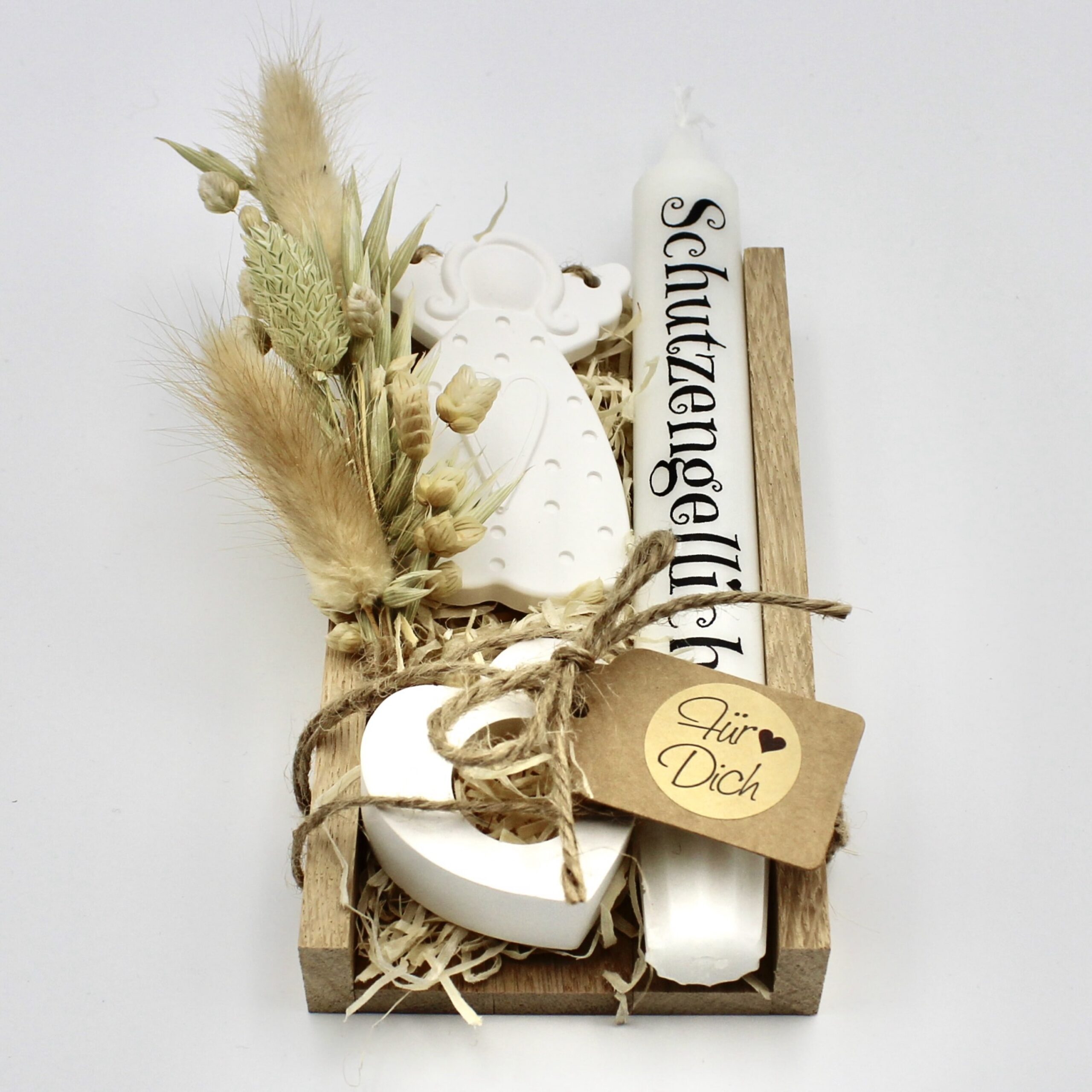 In der Hektik des Alltags ist es eine wunderbare Geste, jemandem mit einer kleinen Aufmerksamkeit eine Freude zu machen. Das Mitbringsel “Schutzengel” in seiner ansprechenden Holzbox ist mehr als ein einfaches Präsent – es symbolisiert Fürsorge und bietet gleichzeitig ein elegantes Detail für die Wohnraumgestaltung. Dieses Set eignet sich hervorragend als Zeichen der Zuneigung für einen guten Freund oder als liebevolle Überraschung zum Geburtstag. Es strahlt Geborgenheit und Freundschaft aus und drückt Ihre Wertschätzung auf besondere Weise aus