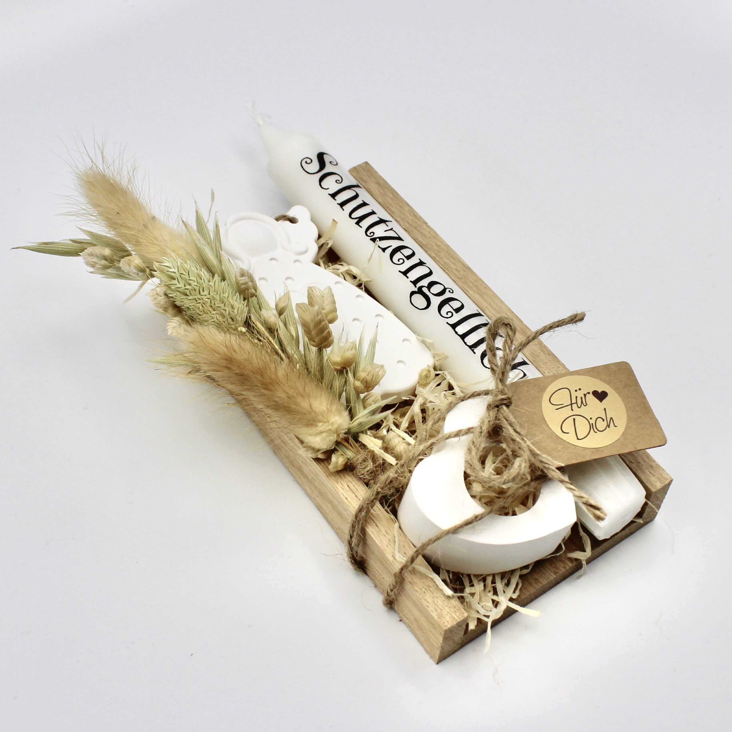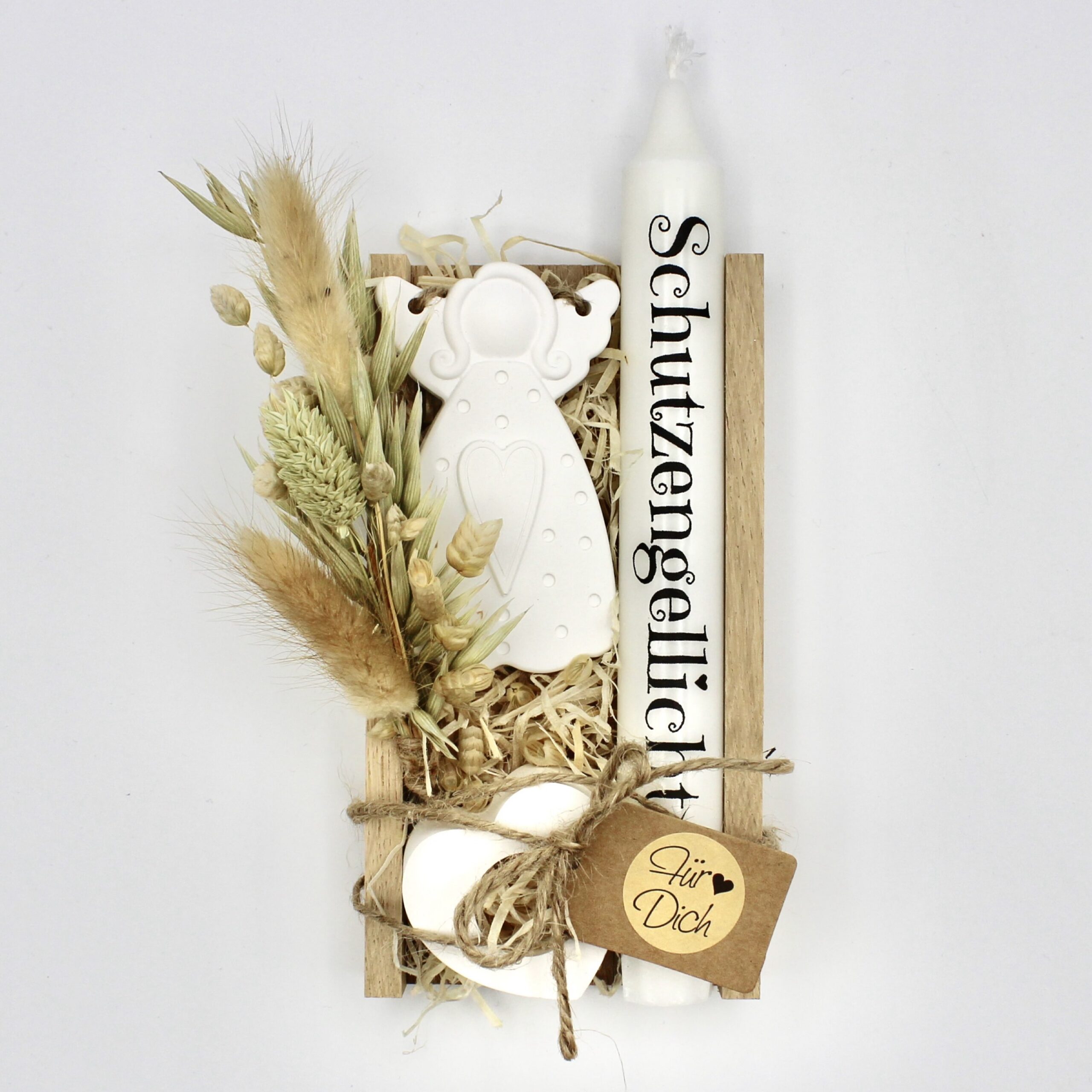 Lernen Sie den Kerzenhalter “kleines Herz” kennen – Dieses zauberhafte Kerzenaccessoire ist nicht nur eine stilvolle Möglichkeit, Ihre Kerzen zu präsentieren, sondern auch ein herzerwärmendes Dekorationsstück, das jedem Raum eine liebevolle Atmosphäre verleiht. Neben dem Kerzenhalter ist auch ein Engel-Anhänger im Set enthalten, der den Namen “Schutzengel” für das Mitbringsel perfekt abrundet.