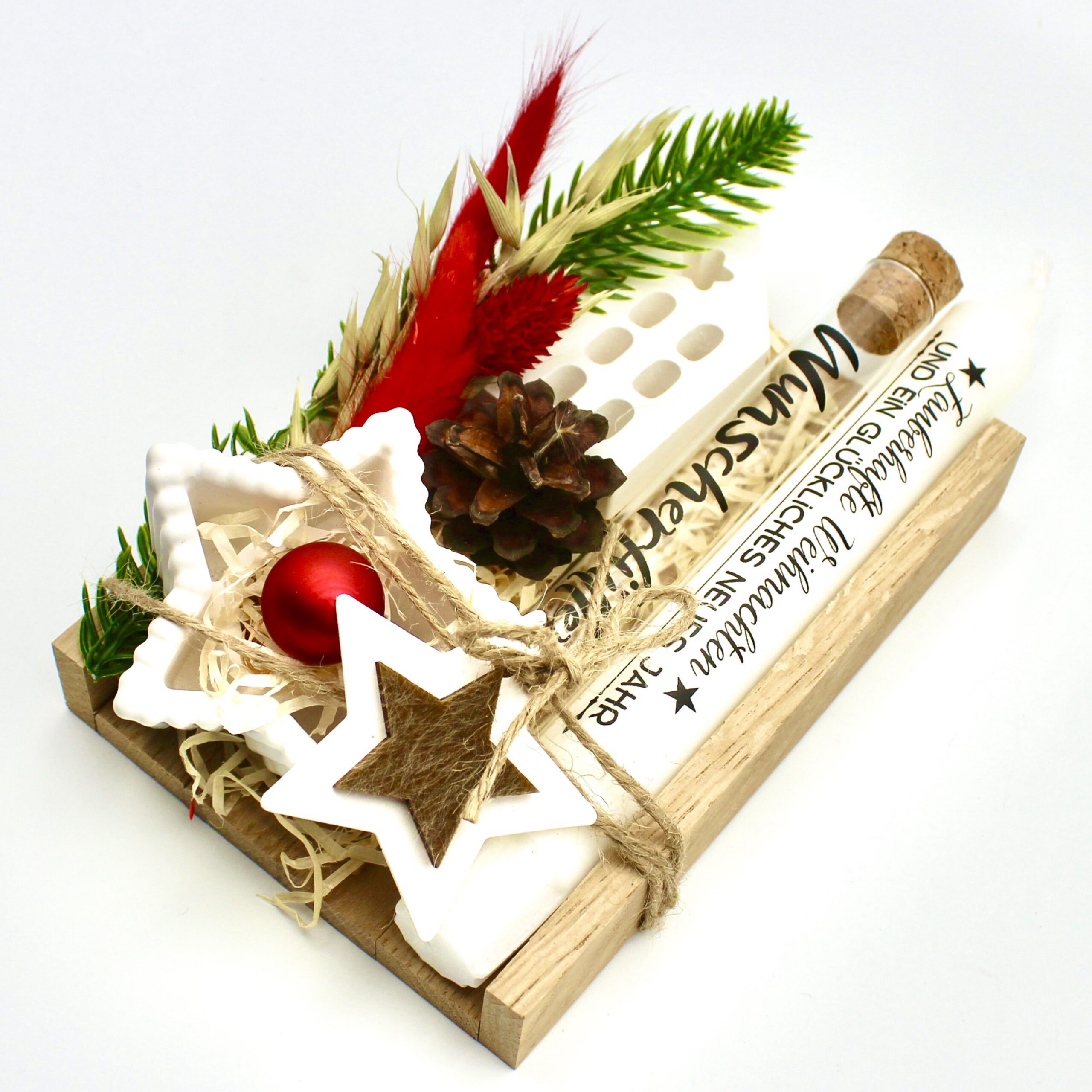 Für alle, die die besinnliche Weihnachtszeit genießen oder jemandem eine ganz besondere Freude machen möchten, ist unser Weihnachtsgeschenk-Set „Zauberhafte Weihnachten“ in einer Holzbox die ideale Wahl. Es symbolisiert die Wärme und den Zauber der Weihnachtszeit und verwandelt jeden Raum in eine Oase der Gemütlichkeit und des festlichen Glanzes. Das Set bringt eine heimelige und festliche Stimmung mit sich und macht aus jedem Zuhause einen Ort voller weihnachtlicher Freude. Es eignet sich hervorragend als liebevolles Weihnachtsgeschenk oder als Ausdruck herzlicher Weihnachtswünsche.