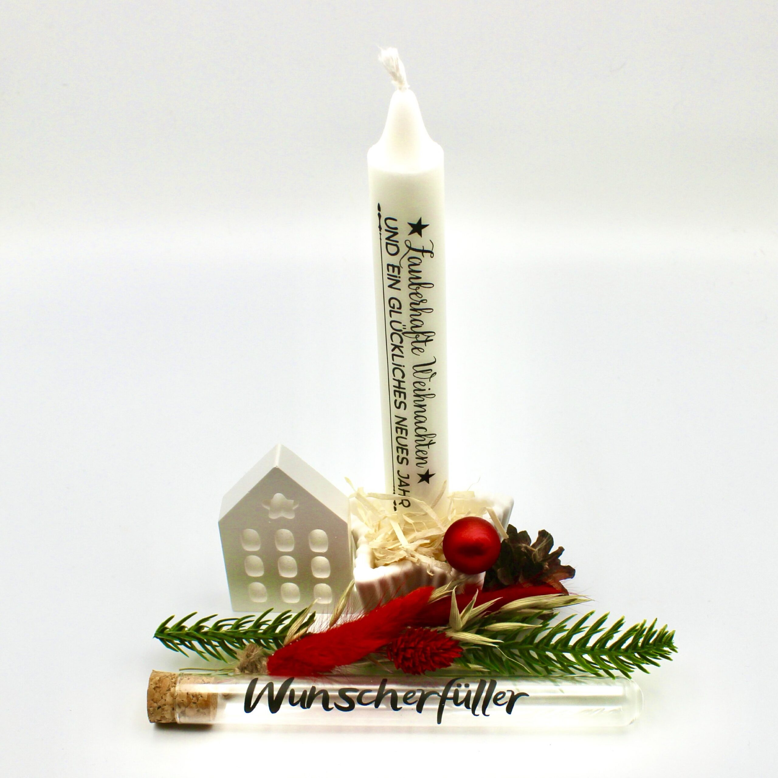 Das Glasröhrchen mit dem liebevollen Etikett „Wunscherfüller“ bietet eine originelle Möglichkeit, den Umgezogenen Glückwünsche, Geldgeschenke, eine persönliche Botschaft oder alles zusammen zu übermitteln.