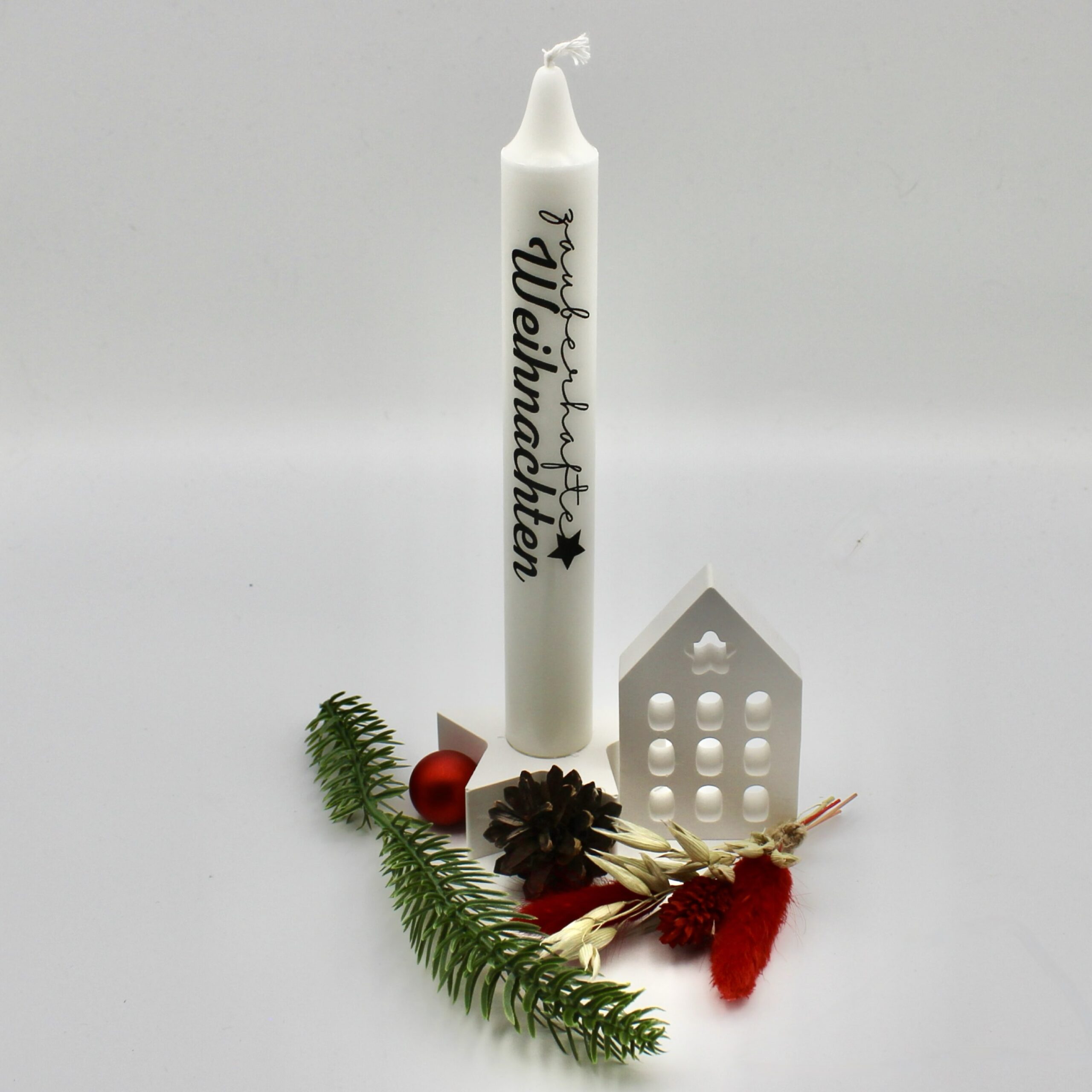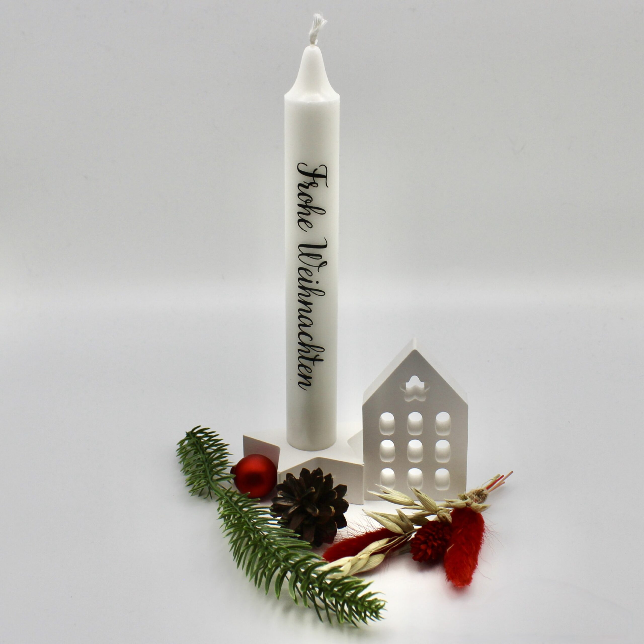 Unabhängig von der gewählten Aufschrift verströmt die Kerze mit ihrem sanften Schein eine beruhigende Wärme und verspricht eine Brenndauer von etwa 6 Stunden. Sie erschafft mit ihrem festlichen Licht eine behagliche, weihnachtliche Atmosphäre, die zum Entspannen einlädt und die besinnliche Stimmung der Weihnachtszeit unterstreicht.