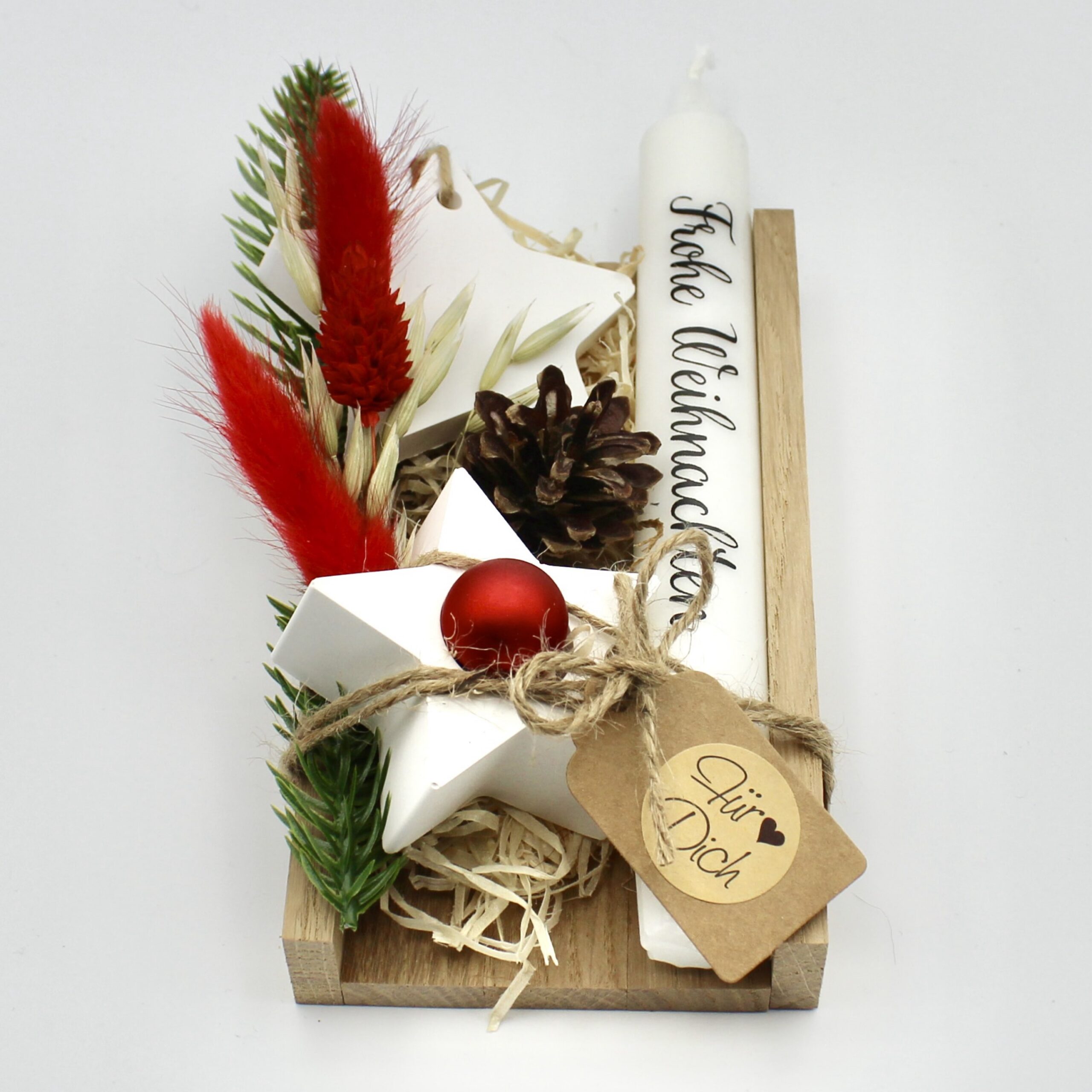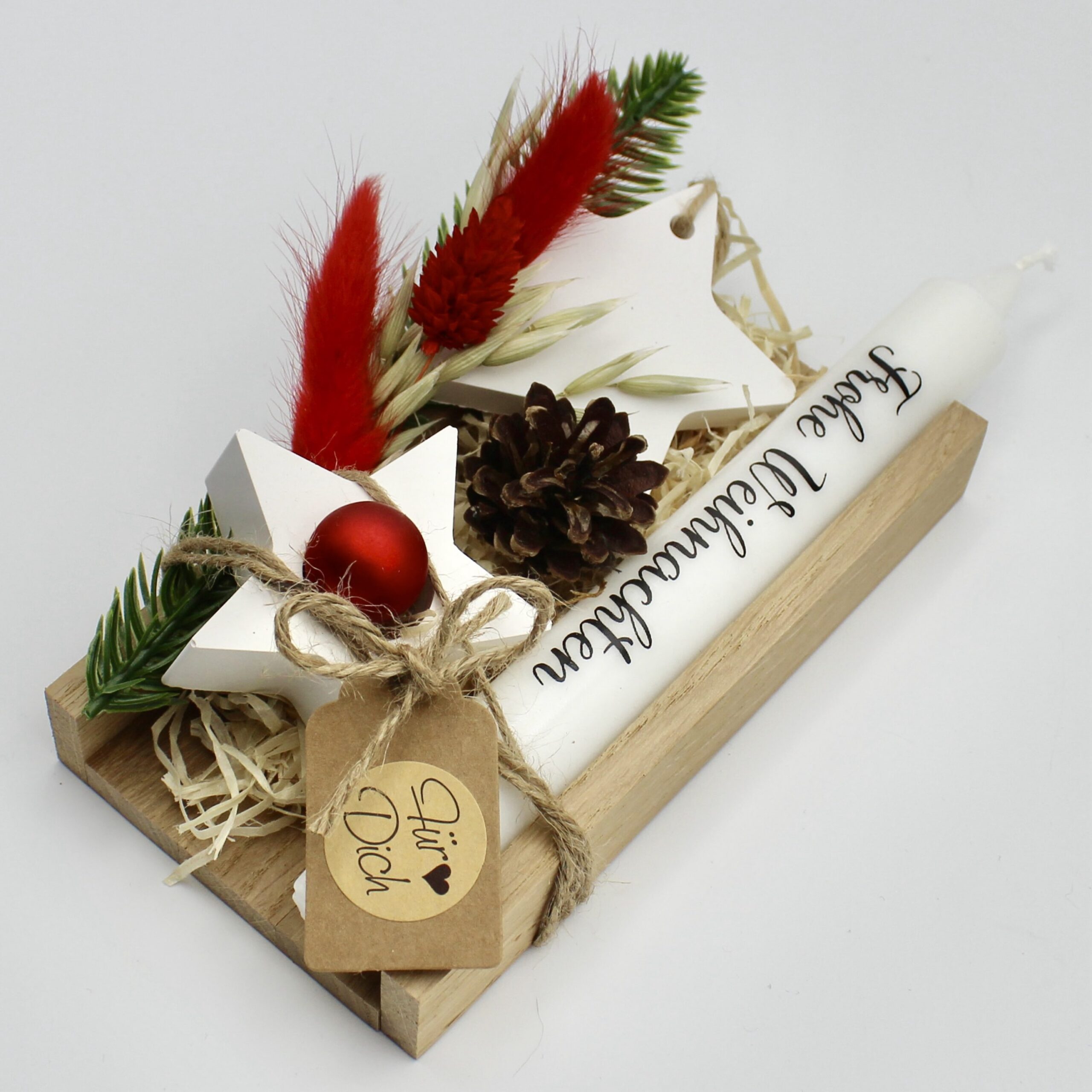 In der Hektik des Alltags ist es eine wunderbare Geste, jemandem mit einer kleinen Aufmerksamkeit eine Freude zu bereiten. Das Wichtelgeschenk-Set „Stern“, präsentiert in einer stilvollen Holzbox, ist mehr als ein einfaches Präsent – es symbolisiert Wärme und Gemütlichkeit und bietet gleichzeitig ein charmantes Detail für die Wohnraumgestaltung. Dieses Set eignet sich hervorragend als Zeichen der Wertschätzung für einen Kollegen oder als liebevolle Überraschung im Rahmen eines Wichteln. Es vermittelt ein Gefühl der Behaglichkeit und drückt Ihre persönliche Wertschätzung auf eine einzigartige Weise aus.